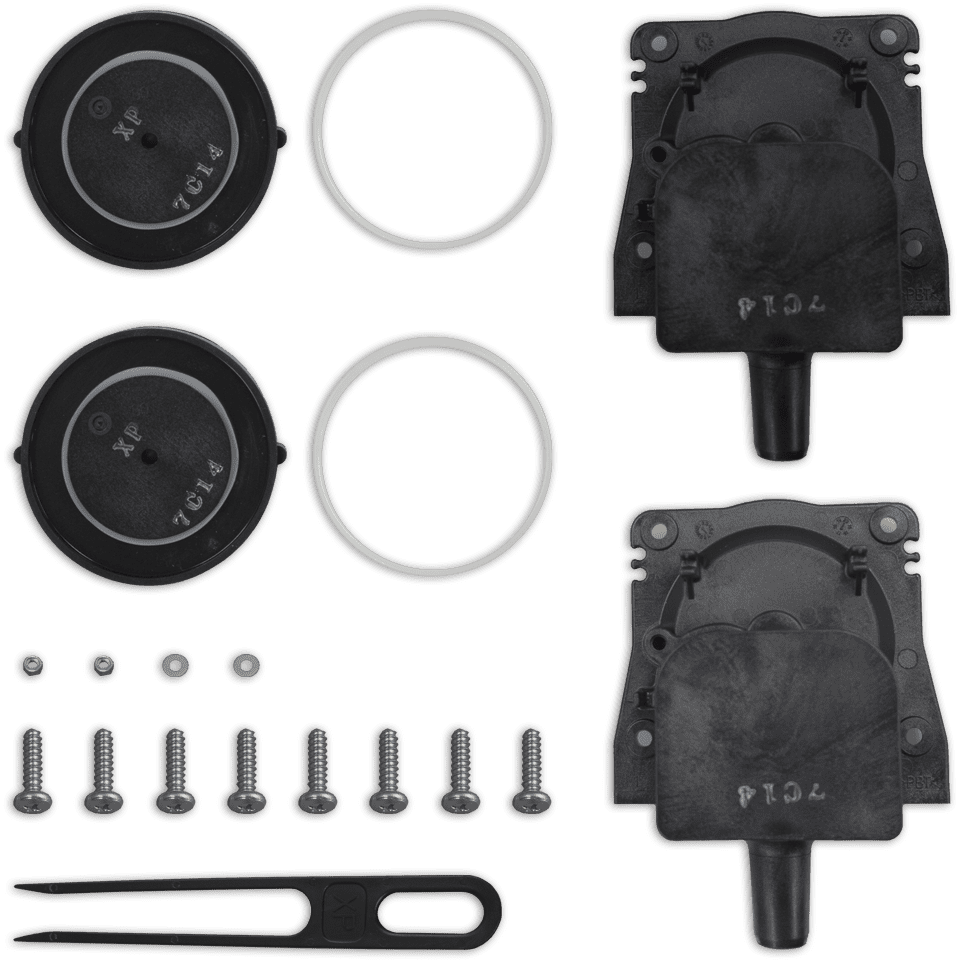 This is a full service kit, which includes all commonly changed items and includes; a pair of valve chambers, diaphragms in their mounts, air filter, jig and fixings for the XP 40/60/80.